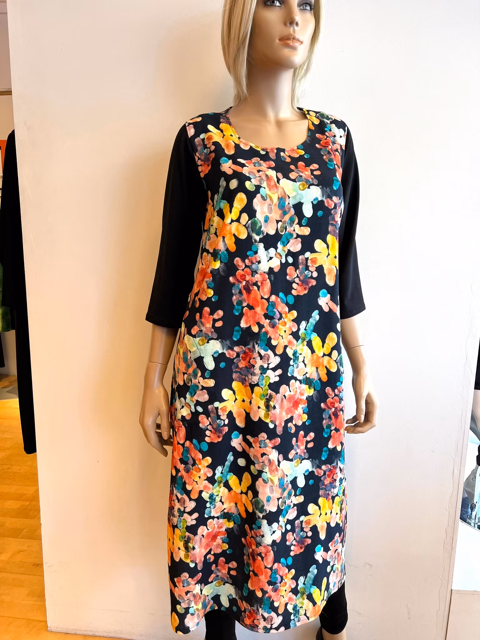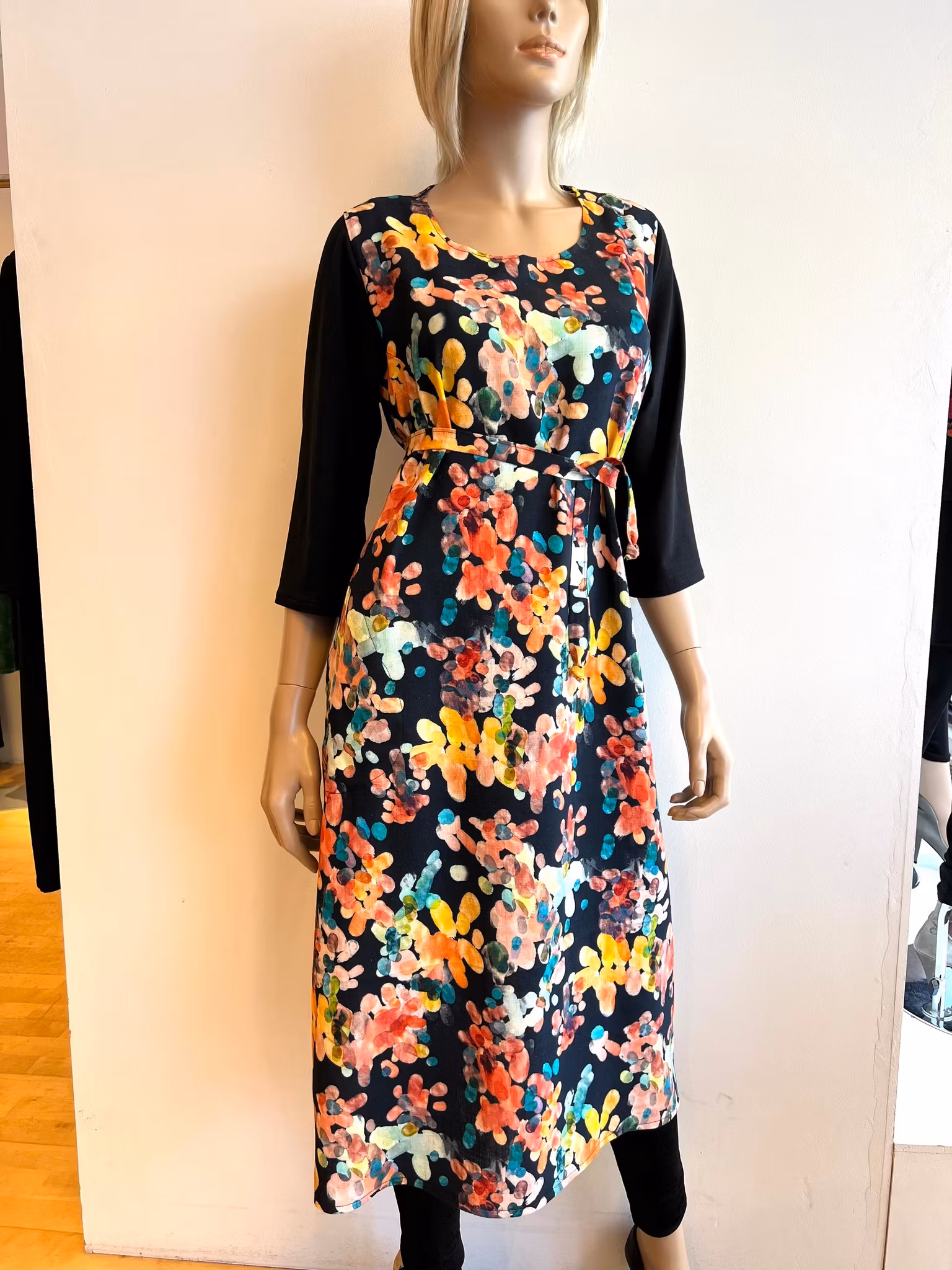Kjole i vevd viscose/lin.One size, Men kan leveres i andre størrelser.Både kort og land.Snor i sidene som kan tas inn bak eller knyttes rundt livet.Lengde cirka
